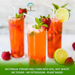 - NATURALIK 250pc plant based long straws are plastic free, petrochemicals free, dye-free, toxin free, taste and odor free. They are made of food grade materials that are 100% Biodegradable and certified compostable. A great ecofriendly alternative to plastic straws. The straws are 9” long and 0.24" diameter, therefore they work perfectly for tall cups.