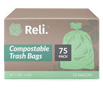 Brand: Reli.Color: BlackFeatures: Compostable Trash Bags | 13 Gallon | Green, Eco Friendly | 75 Count Eco-Friendly (24"x30"): Compostable (ASTM-D6400) in municipal and industrial composting facilities Compostable ASTM-D6400 certified (Made...
