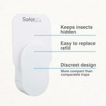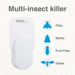 Details: The Safer Home Indoor Plug-in Fly Trap is a small but powerful solution for big insect problems. Whether you have flies, fruit flies, moths, or gnats, you can count on this trap for effective insect control. Simply place in any outlet near where you’ve noticed insect activity, and it will immediately begin to attract and trap insects. Its versatile design allows you to plug it into any standard outlet and rotate the trap as needed. The trap is the ideal choice for homes with children and pets. The Safer Home Indoor Plug-in Fly Trap generates UV LED light which naturally draws in a wide variety of flying insects. Once insects are drawn in by the light, they get stuck fast to the StickyTech Glue Cards, where they are securely held until the time of disposal. Trapped insects are hidden on the back of the StickyTech Glue Card, so you and your guests never have to see them. Each trap provides up to 400 square feet of coverage so even large rooms are protected. The Safer Home Indoor Plug-in Fly Trap was designed with ease of use in mind. Simply peel the backing off the StickyTech glue card and insert it into the trap. Plug the trap into a standard outlet near common insect hotspots, including near houseplants, exterior doors, pet areas, in kitchens, bedrooms, and other areas of your home. Allow the trap to run continuously for 24/7 protection. The trap is also reusable. Replacement StickyTech Glue Cards are available for continued protection from insects.