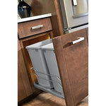 - Keep your kitchen waste and recycling container hidden but easily accessible with this double 35-quart pull-out system; Dimensions (W x D x H): 14.38"W x 22.25"D x 19"H