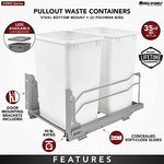 - Includes (2) 35-quart waste containers, a metal frame, pair of slides, mounting hardware, and door mount brackets; Option of a lid can be used (sold separately)
