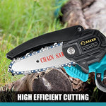 • 【UPGRADED COPPER WIRE HIGH-EFFICIENCY MOTOR】 - Provides your tool with longer run-time, more torque, and more power which leads to less wear and tear, extending the lifetime of the mini chain saw.