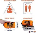 Details: Are you prepared if you get caught in bad weather out hiking, camping, or in a survival situation? Now you can have confidence you will be able to escape the elements and stay alive in an emergency with the Go Time Gear Life Tent Survival Shelter. This 2-person emergency tube tent is engineered for survival featuring a compact, lightweight design so you can take it anywhere. It's built using extra-thick tear and puncture resistant material and includes 20 feet of 550lb paracord so you have a survival tent you can count on to protect you from harsh elements and keep you alive. Plus, if you need to signal for help, the Life Tent includes our Para-Synch Technology paracord drawstring utility rope and a 120-decibel emergency whistle so you can cut through wind and trees to alert rescuers up to 1-mile away. The Life Tent sets up in a snap. Simply remove it from the stuff sack, run the 20ft rope of paracord through both ends of the tube tent, and tie between two trees or sturdy objects 3-4 feet off the ground. Use rocks or gear to anchor the corners of the tent and climb inside to escape the elements. If there’s nowhere to tie the paracord, the 8x5 foot mylar tube tent can also be used as an emergency sleeping bag, improvised survival shelter or emergency blanket. 2-person tube tent Includes Para-Synch Technology paracord drawstring & 120-decibel survival whistle Extra-thick 28um polyethylene material Durable, tear-resistant and weather-resistant Reflective interior reflects up to 90% of your body heat Reusable survival tube tent folds up into Nylon stuff sack All items are 100% reusable Lightweight — just 8.7 ounces The Go Time Gear Life Tent provides protection against the elements keeping you warm, dry, and alive. No more worries about being stranded outdoors. With the Go Time Gear Life Tent, you're always prepared.