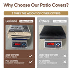 - WATERPROOF: Heavy duty 100% 600D Oxford water-resistant top fabric with added UV-stabilized coating and waterproof undercoating is made to protect your patio furniture cover from natural damage and outdoor elements like sun, dirt, rain, snow.