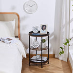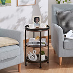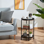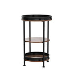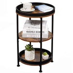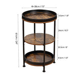 • 【ROUND TABLE】Round Side Table Dimensions: 24'' H × 15'' L × 15'' W. Round shape end table will protect your knees from bruises accidentally caused by sharp corners and create a safer environment for children and your pets to some extent. The industrial look of the black iron frame is complemented by the 3 tiers rustic wood-like desktop of the side tables, the lovingly designed vintage style exudes a touch of classic flair