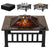 Details: Devoko 32 inch square fir pit has modern feature design, which can warm and decorate your house, is suitable for your patio, backyard, and poolside. You can use it as a fire pit, BBQ grill, outdoor ice bucket or just a large table, just enjoy your leisure outdoor life with this durable firpit.Features:-Modern pattern design makes the fire pit suit for patio, backyard, and poolside.-Multifunctional firepit can be used as a fire pit, BBQ grill, outdoor ice bucket or just a large table.-This fire pit is constructed of heavy duty steel frame, which is durable and solid.-The firepit features square design with four firm legs make it more stable, even on uneven ground.-Treated with high temperature coating, makes it rust resistant for long time outdoor using.-Equipped with a mesh spark lid to prevent sparks and ashes from flying everywhere, and the poker allows you to safely move the grill and burning wood.-Comes with a waterproof outer cover to keep the firpit clean when not use outdoor.-This fire pit table is design to assemble easily, comes with step-by-step installation and all the tools.-The bottom of the brazier is provided with drain holes for easy draining water and cleaning.Specification:Material: IronColor: BlackOverall Dimension (without Lid): 31.97’’ x 31.97’’x 14.4’’ (LxWxH)Fire Brazier Dimension: 20’’ x 20’’Weight: 30 lbsNotes: For safety, please use this fire pit outdoors.