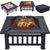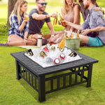 Details: 31.97'' Outdoor Square Fire Pit Metal Garden Stove Brazier For BBQ, Heating, Cooling Drinks w/Cover & Poker