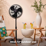 Details: Holmes 16" Outdoor Misting Stand Fan makes cooling your outdoor space a breeze. Ideal for warm, dry, humid weather, this unique fan can cool you down quickly with 3 speeds and 3 micro-mist settings. The outdoor pedestal fan is designed to connect to your garden hose with no special attachments or installation, and the adjustable 3 mist nozzles provide a cooling spray mist that adds moisture to the air. Motorized 80° oscillation delivers cool airflow for wide areas, the adjustable 37” to 53” height and 25° head tilt allow you to direct airflow where you need it most. Ideal for outdoor living spaces, backyards, patios, barbeques, parties, terraces and more. Includes a GFCI plug for added safety and hose clips to keep the cord in place. With a sturdy base, matte black finish and 3-year limited warranty, this 2-in-1 cooling and misting fan is the ideal summer companion.