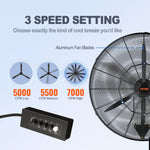 - Move Lots of Air: The push-button switch is convenient for you to control 3 speeds. Performance is rated at a maximum of 7000 CFM with a reach of around 30 ft. Escape your air-conditioned cave and enjoy the outdoors, even in peak heat.