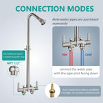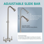 - 【Adjustable Slide Bar】This outdoor shower system hole distance is 6 inch,the height of shower head can be adjusted with a slide bar.