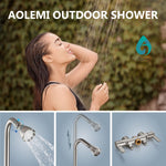 - 【Material】Water Use Information:1.55 Gpm 5.86L/Min.Aolemi outdoor shower kit consists of solid brass shower head, solid brass valve body and 304 stainless steel pipe.Offers durability and reliability. Suitable for different scenarios such as swimming pools, resort hotels, courtyards, beach,etc.