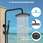 - 🚿 [High Quality Material]: SUS Stainless steel 304 outdoor showers, matte black frosted metallic look, adopting multi thickness nano electronic coating, Well resist discoloration, rust, and paint peeling.
