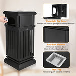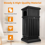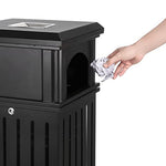 Details: Material: Stainless Steel. Color: Matte Black. Size: 40 x 40 x 90cm/ 15.74" x 15.74" x 35.43"(L*W*H). MODERN STYLE - BEAMNOVA Outdoor/Indoor Steel Trash Can with Ash Urn features two stylish perforated panels, two convenient openings, and a stainless steel ash*tray that enhances high traffic areas while keeping them clean and litter-free. OUTDOOR / INDOOR USE - Manufactured with commercial-grade steel with a matte powder-coat finish, this waste container performs well in both outdoor and indoor conditions. Includes a chip and peel-resistant rigid barrel for easy maintenance. TOUCH-FREE DISPOSAL - Two-sided opening design allows you to discard waste without touching the lid. WIDELY APPLICATION - For use on outdoor patios, meeting spaces, cafés, recreational and picnic areas, corporate and college campuses, boardwalks, tourist attractions, and other high-traffic outdoor and indoor locations.