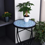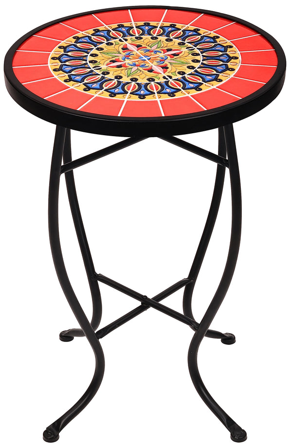Details: Elevon 14 Inch Round Side Ceramic Tile Top Indoor and Outdoor Accent Table, Sun