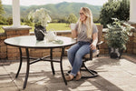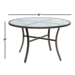 Details: Come together this season over a great outdoor meal with the help of Garden Elements 40" round glass top dining table. It comes in a lovely shade of taupe, constructed with a weather-resistant aluminum ring and a sturdy powder-coated steel base that will last for years. The warmer days are something to appreciate, really make the most of them in the way you share them with others by having a space to converse, eat, or have a refreshing drink.