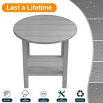 - [ ROUND YARD TABLE SIZE ] - 18”(DIA.) X 18”(H), extra storage space is available under the slatted tabletop, our Adirondack style side table provides more room to store items such as a lamp, a book, food and drink coasters than ordinary side tables, tabletop is strong enough to hold max weight capacity of 200 pound.