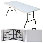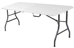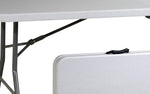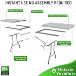 Details: 6 Foot Plastic Folding Table - Folds in Half with Carrying Handle – Rectangular - Lightweight and Portable - White Resin With Sturdy Steel Frame - by Ontario Furniture
