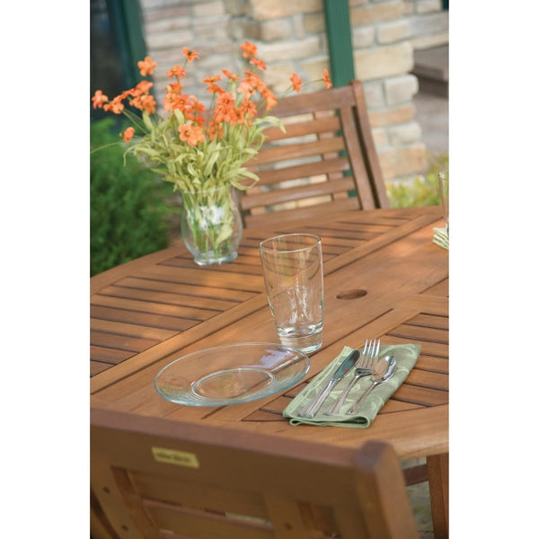 Product Care: Maintain the stained finish with teak or linseed oil in spring and summer. Cover or store furniture during harsh weather and winter. CAUTION: Dispose of oil-soaked rags carefully.