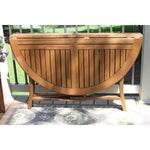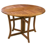 - Elevate your outdoor entertaining with the Eilaf Eucalyptus Round Folding Outdoor Dining Table. This plantation-grown hardwood table boasts an elegant umber brown color and stainless steel hardware for added sophistication. Its foldable design and resin footpads ensure easy storage and durability for both small spaces and large spaces, while the built-in umbrella base and clamp provide shade during sunny days. Arriving fully assembled, this table is ready for years of outdoor enjoyment