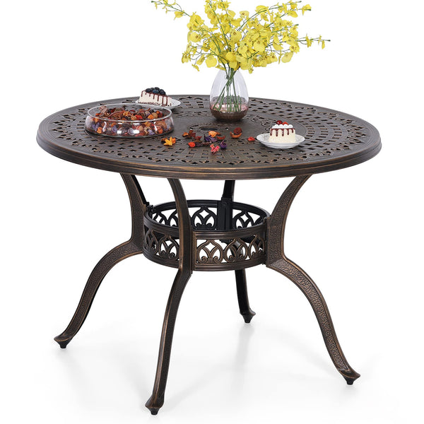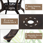 - High-quality Material: The outdoor table is made of premium sturdy cast aluminum material, which is very lightweight and easy to move. This bistro patio table is also resistant to weather, fade and rust. It can be used for outdoor leisure time for a long time