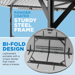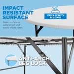 • HEAVY DUTY STURDY & STABLE - Lightweight and portable, this plastic folding table features an impact-resistant resin surface, waterproof & easy to wipe clean, and is supported by a heavy duty steel framework. The reliable anti-arch lock keeps it steady and stable on any indoor or outdoor surface.