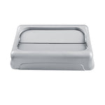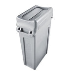 Details: Description The Rubbermaid Commercial Slim Jim Trash Can Swing Lid promotes waste management compliance. This trash can swing top provides easy access for trash disposal and then swings back to hide trash from public view. The heavy-duty sturdy plastic is rust-proof and easy to clean.