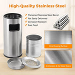 Details: Dimensions: 12.4*27 in / 31.5*68.5cm(D*H); Material: stainless steel. SIMPLE MODERN DESIGN - Cylindrical body with rounded edges to prevent hand scraping. UPGRADED STAINLESS STEEL - Worried about rusting in the outdoors? Don't worry, BEAMNOVA outdoor trash cans have been updated from metal to thickened stainless steel, making them more resistant to corrosion and suitable for indoor and outdoor use. The surface layer is rust-proof painted or brushed material, beautiful and durable. It can be placed outdoors without fear of the wind and sun. EASY TO CLEAN - BEAMNOVA trash can comes with a detachable, high-quality galvanized liner and a removable tartan tray on top. Recommended for putting grit, water or small pebbles. Easy to clean, practical and convenient. HIGH APPLICABILITY - for indoor and outdoor use. Can be placed in the kitchen, living room, bedroom, courtyard, toilet, etc. It can also be used for industrial, medical, and industrial purposes, in hospital corridors, next to hotel elevators, in outdoor parks, etc.