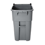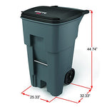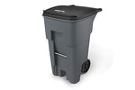 Details: The Rubbermaid Commercial BRUTE Rollout Trash/Recycling Can with Hinged Lid is the industry leader in waste and material handling applications. These seamless rectangular bins are constructed of durable polyethylene with a hinged lid, integrated handle, and inset wheels. Heavy-duty polyethylene weighs less than aluminum or steel and resists cracking. The hinged lid open fully and locks against the trash/recycling bins. A molded-in axle retainer adds strength while inset wheels make the bin maneuverable and help prevent damage to walls and doorways. A molded-in catch bar makes the trash/recycle bins compatible with automated and semi-automated lift systems for curbside garbage and recycling collection. This trash/recycle bin contains an ultraviolet (UV) stabilizer to help prevent fading and discoloring.