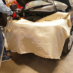 Details: Prevent accidents, injuries, and property damage that can be caused from sparks, flares, and splatter with the ABN Heavy-Duty Fiberglass Fire Retardant Blanket, 6' x 8' Foot - Large Welding Fireproof Thermal Resistant Insulation. It arrests sparks and short-term exposure to flame as well as insulates from heat. It is constructed from fiberglass with up to 1,000-degrees Fahrenheit working temperature. The tight weaving pattern keeps it bound together and reduces wear and tear for ultimate durability. It stands up to long-term, repeated use and includes a reinforced hem with 3/8-inch brass grommets for secure and easy hanging. It folds up to a compact size for easy transport, simple storage, and quick organization. WARNING: This product can expose you to chemicals which is [are] known to the State of California to cause cancer and birth defects or other reproductive harm. For more information go to www.P65Warnings.ca.gov.