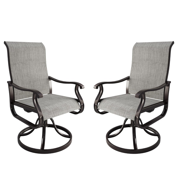Amopatio Patio Swivel Chairs Set of 2, Outdoor Swivel Rocker Dining Chairs with All Weather Textilene High Back & Metal Frame, for Backyard Deck Lawn Garden, Light Gray
