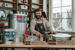 • Made in the USA. Behrens industrial strength garbage cans with solid steel handles and a tight fitting lid are ideal for trash, yard waste, seed, and pet food/livestock storage
