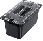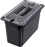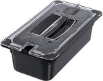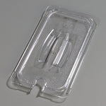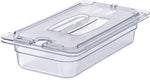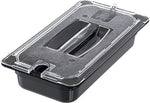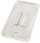 Details: Carlisle Top Notch Clear Third Size Handled Notched Food Pan LidThis Top Notch handled notched lid from Carlisle fits most third size food pans and resists food acid and oils. It withstands tough use and is made from durable polycarbonate material. This clear food pan lid is dishwasher safe and is perfect for restaurants, buffets or catered events!Model #: 10271U07 Material: Polycarbonate Color: Clear Handled Notched Lid Resists Food Acid And Oils Can Withstand Temperatures From -40° To 212°F Dishwasher Safe NSF Listed Length: 12-3/4" Width: 7" 254389