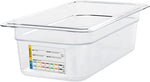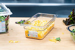 Details: Labeling, storing, and serving food is made easier and safer with our unique StorPlus PermaLabel plastic storage containers with built-in, universal date labels. You can use a grease pen or a dry erase marker to make changes to the labels as needed. The labels are easily readable and include universal indicators such as the use-by date, the shelf life, and the days of the week in both English and Spanish. Reducing time spent peeling, applying multiple labels, and removing sticky residue that poses health risks is a win-win. Not only do the integrated labels save money, but they also prevent the need for costly printed labels.Time is precious in any kitchen; our food storage containers will help you maximize your efficiency. These food pans are stackable with each other and with any of our other available StorPlus branded food pans, and we offer a variety of universal lids (sold separately) to fit your needs. Whatever the size of your kitchen, from a single-person apartment to a multi-million-dollar restaurant, the modular kitchen storage options available will have you covered.