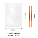 - ✅【What You Will Get】Totally 200 PCS clear cellophane treat bags are 5x7 inches on package,come together with 200 twist ties 2 mix colors(red and yellow), our small plastic bags are the supreme choice to dress up your treats, bakeries, crafts,gift wrapping beautifully and will instantly brighten up your parties and events or boost up your sales.
