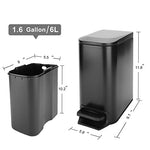 Cesun Small Bathroom Trash Can with Lid Soft Close, Step Pedal, 6 Liter / 1.6 Gallon Stainless Steel Garbage Can with Removable Inner Bucket, Anti-Fingerprint Finish (Matt Black)
