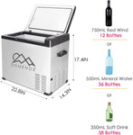 Details: Wanting to keep the beer cool on a trip to the outdoors? Going away for a while and there's food that needs to be kept in a freezer? The Portable Fridge is a great choice of kit for whose looking for a fridge/freezer portable appliance Whether you're off to the park for a picnic, or on the road camping for months, the Portable Fridges are invaluable for keeping your food fresh and your drinks cold! Key FeaturesSuitable for Car and home using work on 12/24V DC and 110V to 240V AC and run great with your solar system.Can freeze down to -4F-20C) for true car refrigeration and compact fridge at home.3 stage car battery protection system to prevent the car battery run down.With portable handles on both side,easy for moving.Vibration resistant design to protect the device safety while driving on road.Safe to run on angles up to 45 Degree from horizontal,great for 4WDing!Digital control panel with electronic temperature control.High efficiency compressor with adjustable ECO and HH modes. Product DetailsDimensions:22.4inch(L)x 19.7(H) x 14.4(W) inchesCapacity:54Quart(50 Liter) Package1 X fridge freezer1 X DC power cord(12/24V)1 X Adapter for AC power1 X Instruction book
