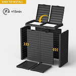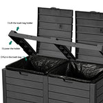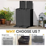 • DOUBLE COMPARTMENTS- The outdoor garbage bin measures 30.7”L x 16.3”W x 33.9”H with 62-gallon capacity, suitable for garbage bags of over 39in height; Double compartments allow for trash classification; Easy mobility with convenient handle.