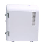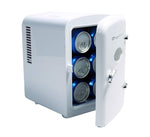 - COMPACT: 4 Liter capacity chills six 12 oz. soda cans; interior is 5 x 5 x 7. 5 and includes a removable shelf that offers a variety of storage options so you can store small items such as yoghurt, fruit, milk, bottles etc