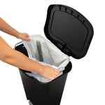 • STEP ON TRASH CAN FOR EASY USE - This kitchen trash can with lid is designed with a foot pedal for hands-free operation. It allows you to throw your trash without having to lift the lid of the can.