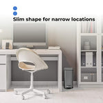 - Bathroom Trash Can – With 5 liters of capacity and a slim rectangular shape, this can be placed in tight spots around the restroom as well as an office near a desk