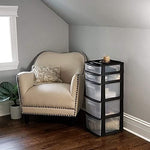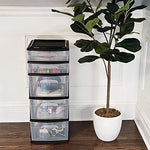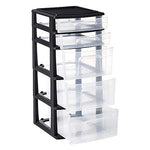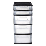 - Clear plastic design with easy-access handles makes it easy to see storage contents without having to open or remove drawers