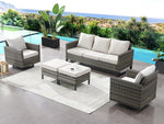 【Comfortable 4'' Thick Cushions】This garden furniture set features deep and wide seats with 4-inch thick sponge-padded cushions.Offers good resilience, not easy to deform or slide, also protect your lumbar and offer a comfortable sitting experience.Water-repellent polyester cover with zipper,Easy to clean and keep.