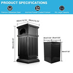 - 【Compact Size】 The IRONWALLS commercial trash can for outdoor has a compact size of 40 x 40 x 90cm/ 15" x 15" x 35.4"(L*W*H), making it suitable for various locations without taking up too much space. Its large capacity ensures efficient waste disposal in high traffic areas such as stadiums, parks, gardens, patios, malls, campuses, picnic grounds, and shopping plazas.