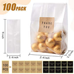 - 【Package Included】100 pcs clear cookie bags with 100 pcs thank you stickers.Nice candy bags for packaging.