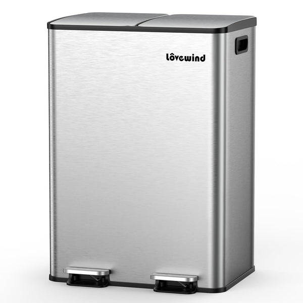 - Stainless Steel Construction: Lovewind dual trash can is made from high-quality stainless steel, making it a long-lasting addition to your kitchen and easy to clean
