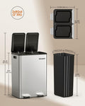 - Dual Compartment Design: Lovewind stainless steel pedal trash can features 2 x 8-gallon removable buckets, which can hold a total of 16 gallons of trash, ideal for waste sorting and recycling at home or in the office