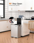 - Hands-Free Operation: Our kitchen garbage can features durable stainless steel pedals for hands-free trash disposal. The stainless steel foot pedal has a service life of over 200,000 times, that's more than 20 steps a day for 30 years