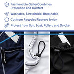 - Our gaiter face cover for men and women is future friendly; gaiters are made from certified Repreve recycled nylon jersey; 4-way super stretch nylon ensures snug and secure fit; great face and neck coverings for men, women, and children to protect themselves