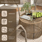 - 💪SOLID SUPPORT: Our woven side table stands strong with its robust metal frame, offering a stable and secure platform with 75lbs weight capacity. Ideal for drinks, books, or decor items.