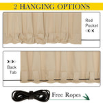 - Ready-Made: The package includes 2 panels of weighted blackout cabana curtains and a piece of rope for fixing. The Rustproof grommets & Back Tab at the top and bottom fit standard rods up to 1.6" in diameter.